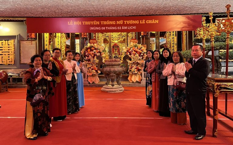 Ngày 6/3/2025, vào hồi 6h30p, các đoàn đại biểu đại diện các tổ chức, cơ quan, đã tới dâng hương kính lễ ở Đền Nghè, nơi thờ Nữ tướng Lê Chân- Thành Hoàng làng Hải Phòng.